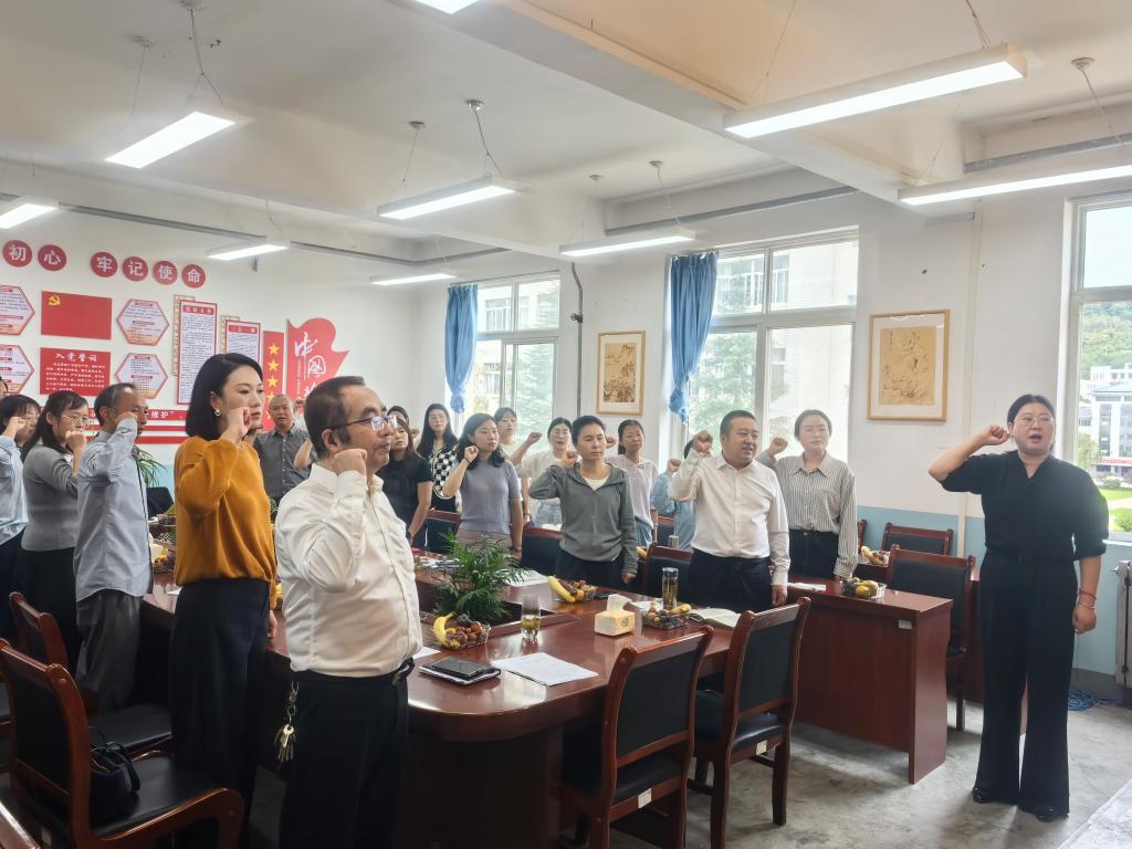 为进一步引导全院教师牢记育人使命,勇于承担教育强国的历史责任,在第 41 个教师节来临之际,伟德BV1946官网于 9 月10 日下午举行 “重温誓词,牢记育人初心” 教师宣誓仪式暨庆祝教师节座谈会,公司全体教师参会,公司党总支书记汪鸿主持。