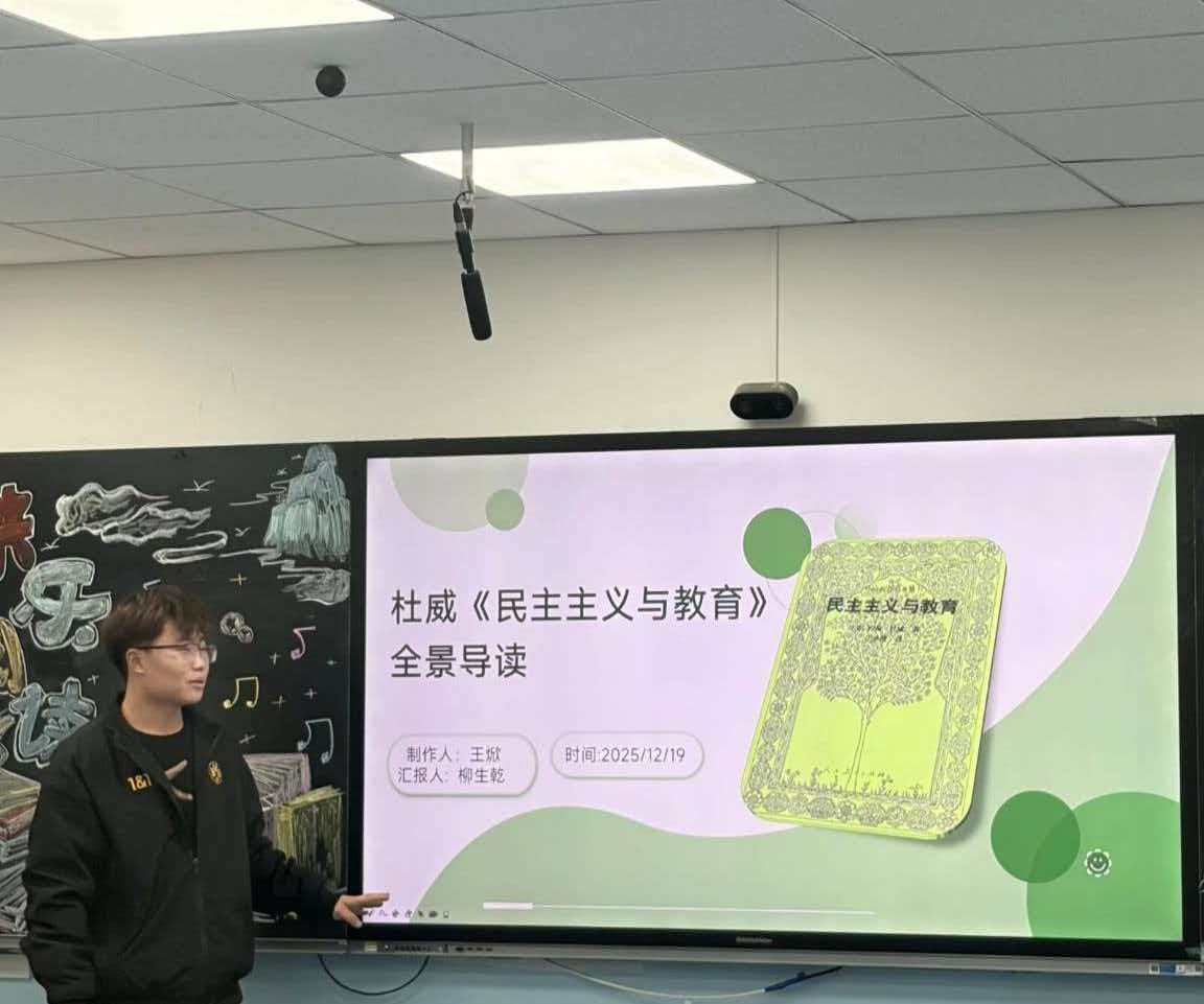 活动以读专业书籍、碰撞教育思想”为核心,在1.5小时的时长里,呈现出丰富且紧凑的环节。这不仅仅是一次书籍内容的交流,更成为了一场关于教育原点、儿童价值与专业使命的深度思辨。核心分享环节采用“读书分享+文艺节目穿插”模式,兼具专业性与观赏性。王艳艳、马白金、柳生乾等7位同学依次上台,围绕《爱和自由》《观察儿童:实践操作指南》《民主主义与教育》《陈鹤琴幼儿教育文集》等学前教育专业书籍,结合PPT、书籍实物及精彩片段朗读,分享核心内容与个人感悟——既有对“活教育”“有准备的环境”等理论的解读,也有对儿童观察、行为引导等实践方法的干货分享,更有从《不平等的童年》中引发的对教育公平的深度思考。