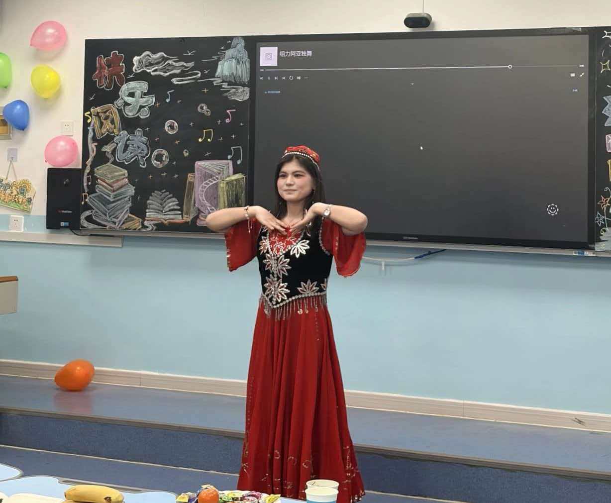 分享间隙,文艺节目轮番上演:柏波兰、姜妮娜带来的朗诵《再别康桥》温柔婉转,417宿舍合唱《晴天》唤起青春记忆,411宿舍演唱《落空》情感细腻,413宿舍朗诵《你是人间四月天》传递温暖希望,组力阿亚的独舞《新疆山水美》展现浓郁民族风情,让书香与艺术碰撞出别样火花。