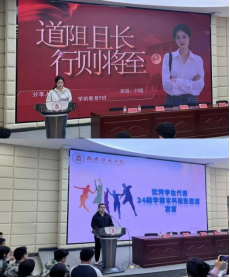 在员工代表发言环节,24级学前教育本科一班张思源同学结合自身入学一年的学习与生活经历,分享了适应大学、高效学习的实用心得;23级学前教育9班王帅同学则以学姐视角,鼓励新生们在大学期间积极参与实践活动,实现全面发展。