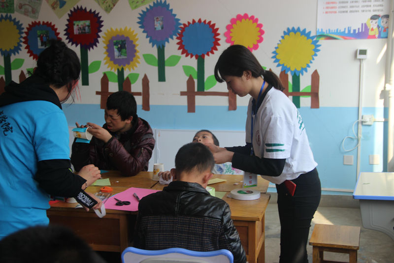 下午的陇南市特殊公司里充满了温暖和煦的阳光,不时传来孩子们的欢歌笑语,在这里,有一群特殊的孩子们正在接受来我们的爱心帮扶。志愿者们给启智班的孩子们教手工,和启聪班的孩子们一起做户外游戏,他们很认真、很聪明,也很兴奋,不时的亲吻、拥抱我们的志愿者,志愿者们也在一次次的被感动着。有人曾经说过:孤残儿童是被上帝亲吻过的孩子。是的,他们和我们一样,会呼吸,会哭、会笑、会开心,会难过,他们,和我们一样。只是上帝太过偏爱他们,才从他们身上拿走了一些能力。