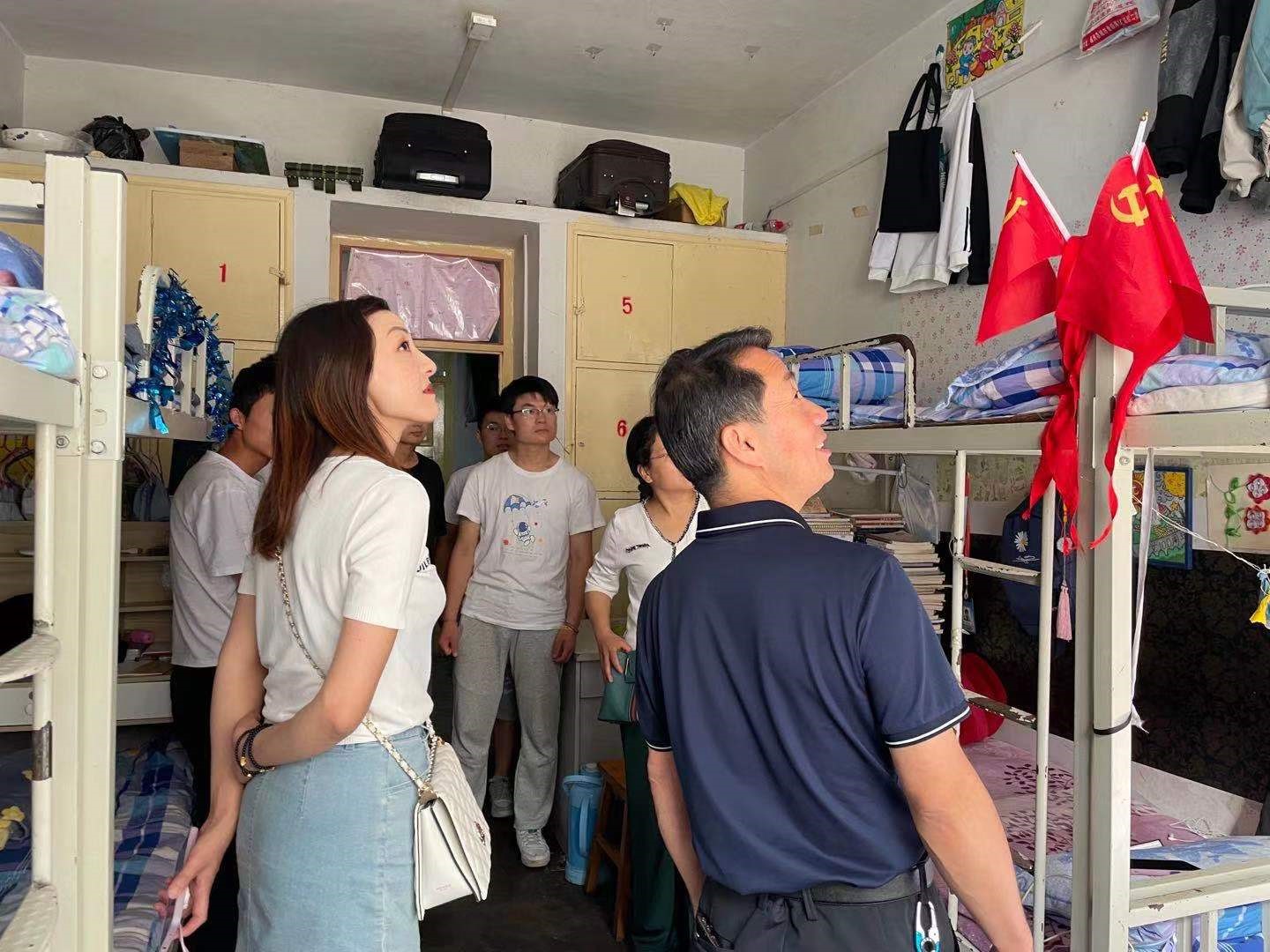 2021年7月3日下午,公司副董事长张建辉在学前教育公司党总支书记李霞、辅导员马妍丽的陪同下走访了伟德BV1946官网北校区男生2号公寓115、117和南校区女生3号公寓541、539宿舍,看望联系员工,了解同学们的生活、学习状况及面临的困难。