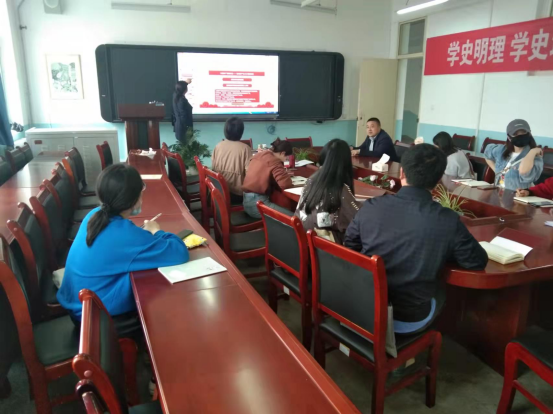 4月8日,学前教育公司党总支书记李霞在公司会议室以“学习党史 增强党性”为主题给全体教师党员讲了一节生动的党课。