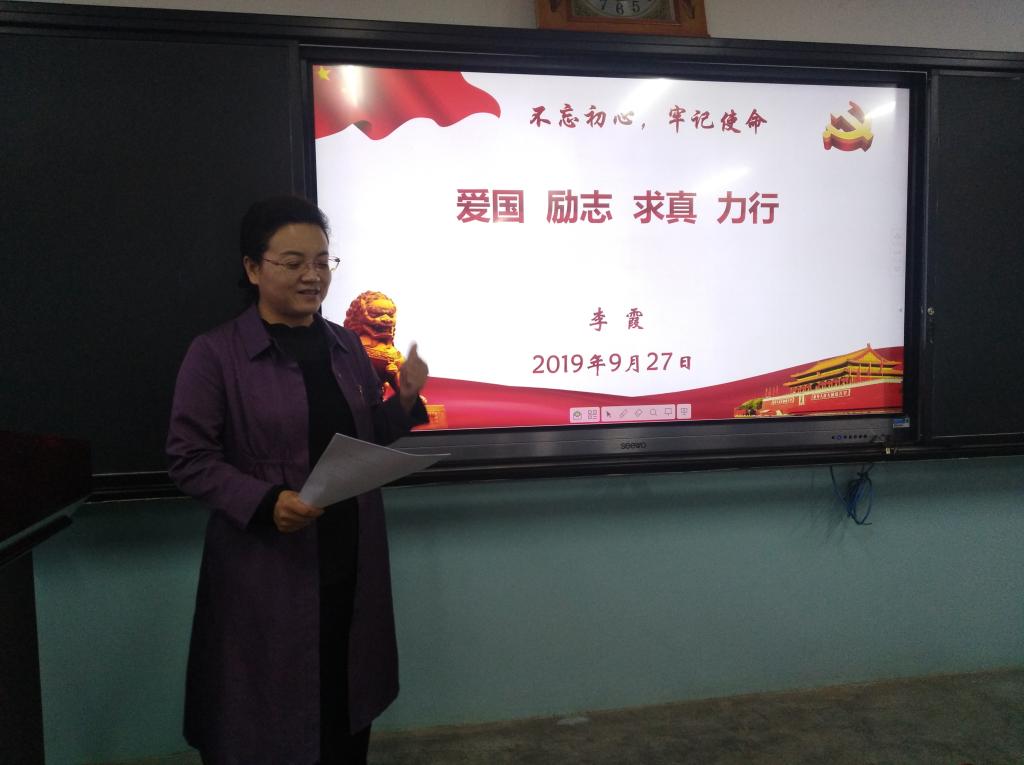 为深入开展“不忘初心、牢记使命”主题教育,学前教育公司党总支于9月27日下午在会议室开展“不忘初心、牢记使命”主题教育党课学习,由公司党总支书记李霞作题为《不忘初心、牢记使命——爱国 励志 求真 力行》的专题讲座。公司所有教师党员参加,会议由教师党支部书记马莉主持。
