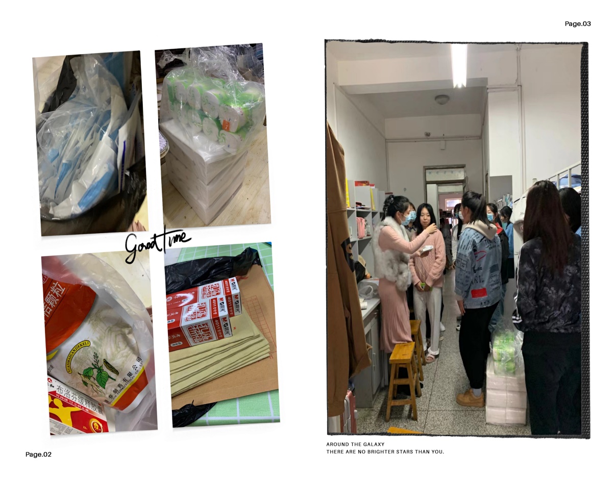 牛玲老师在接到公司封校通知的第一时间就为员工代购生活用品,让同学们感受到大家庭的温暖。