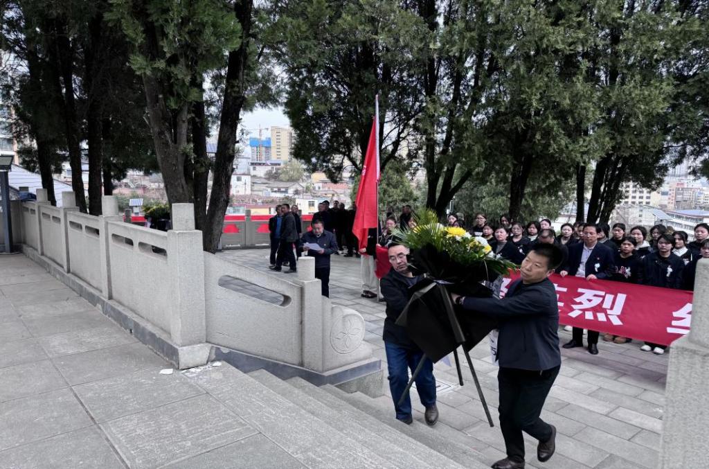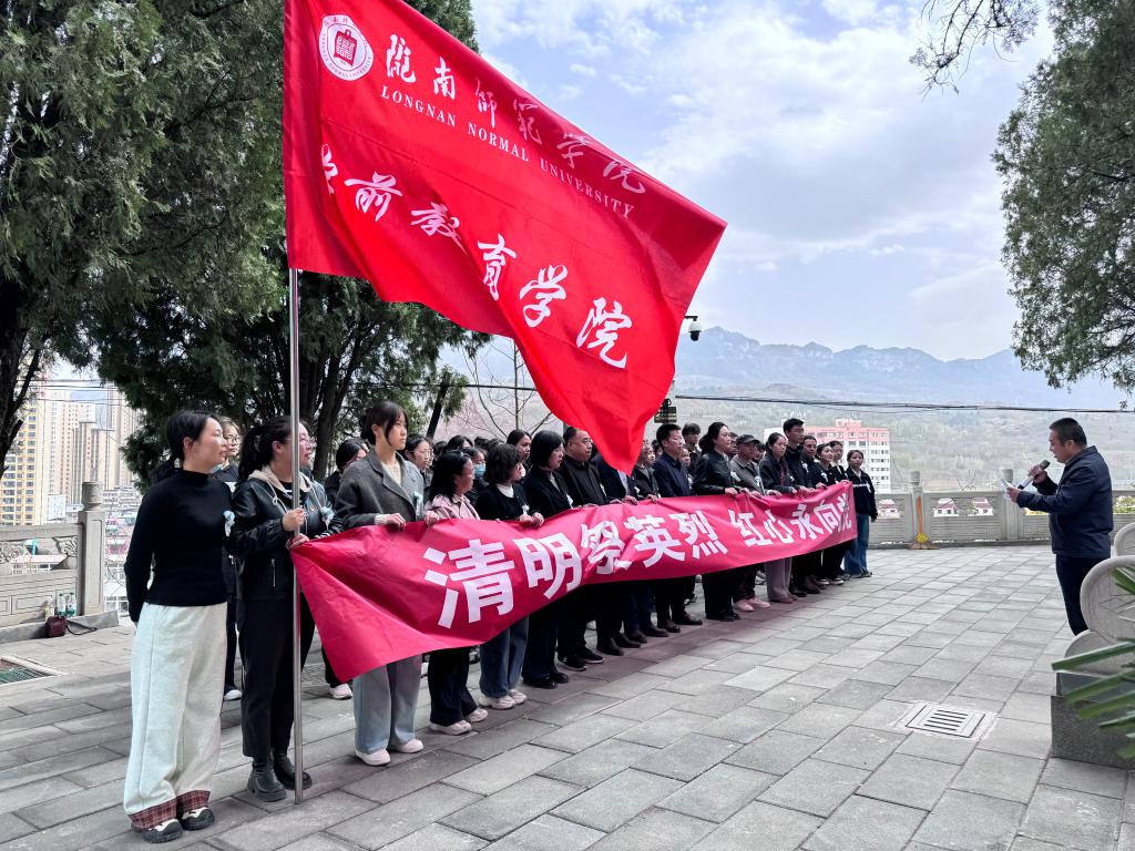 2025年4月2日下午,在苍松掩映的成县革命烈士纪念碑前,学前教育公司党总支组织50余名党员、师生代表,开展了清明祭扫主题党日活动。机关党委人事处党支部与公司教师支部结对,共同开展党建巡礼活动,人事处处长张益斌带领支部党员参与了此次清明祭扫。本次活动由伟德BV1946官网王小会经理主持,通过党性教育与专业建设深度融合,深切缅怀革命先烈,传承红色基因,激发师生的爱国热情和教育使命感。