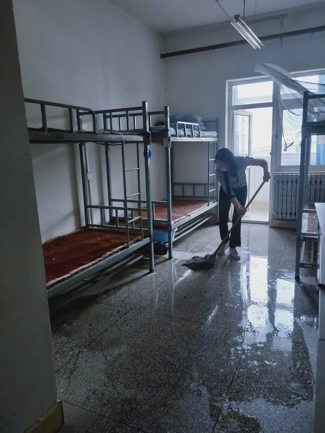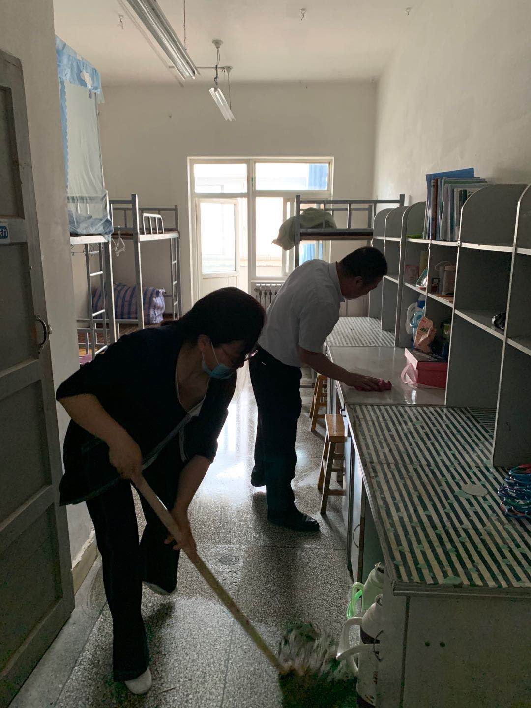 5月18日下午,伟德BV1946官网全体教师为即将复课的员工们送上第一份 “爱心礼物”。教师自发行动,纷纷拿起清洁工具和消毒工具,深入伟德BV1946官网员工宿舍、教室,仔细的打扫每个角落、清理垃圾、进行消毒和开窗通风,以实际行动为返校复课的学子贡献一份自己的力量,表现出全院教师对员工的关爱和期待。