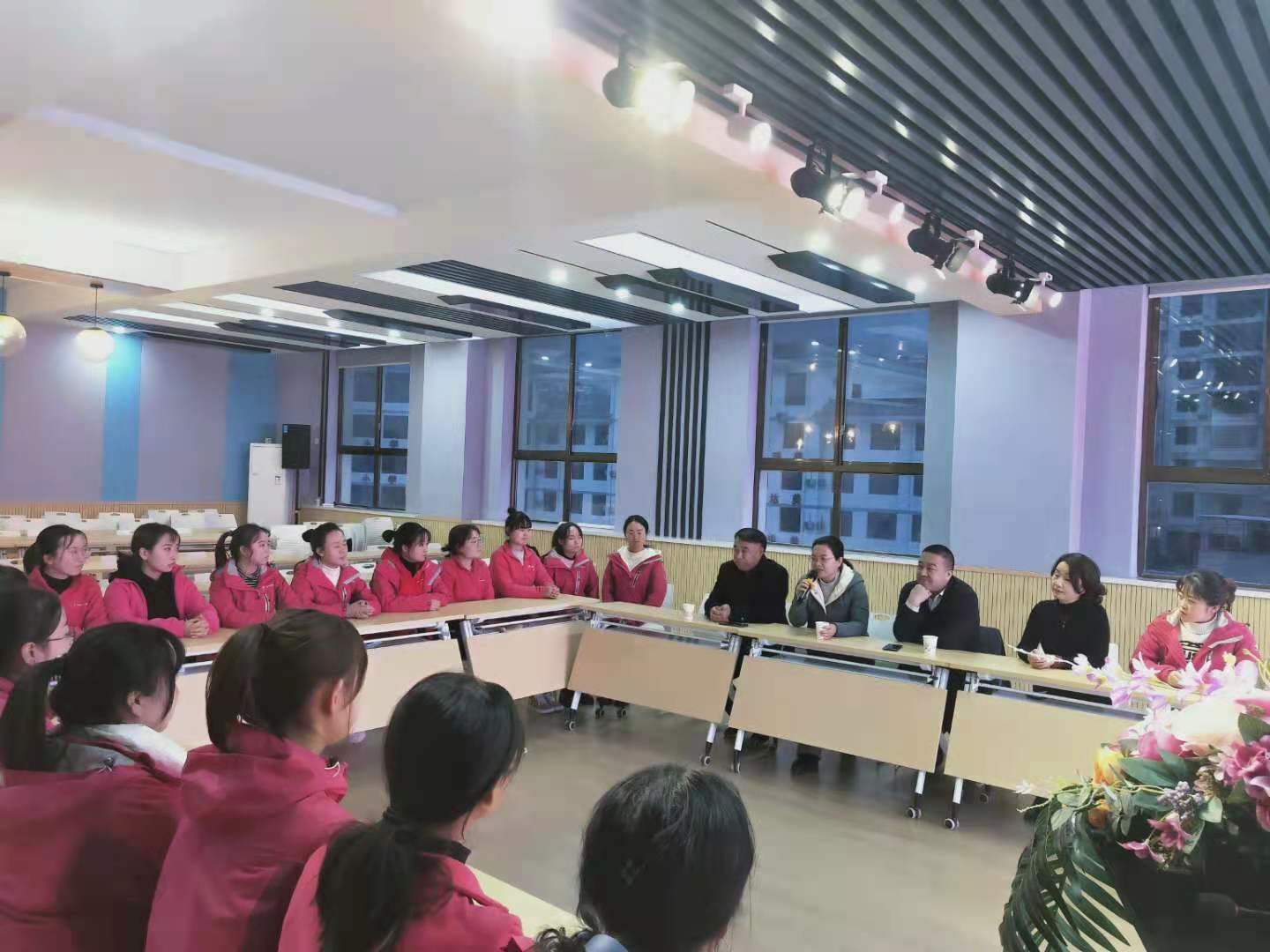王小会经理首先感谢园方在实习生培养、管理中的辛勤付出,勉励员工不负众望,从幼儿眼中体察教育的细节、向身边的每一位教师学习;公司书记李霞强调要通过交流学习,建立起高校和幼儿园之间沟通的桥梁,资源共享为全面合作共建教育实践基地作出更深入的探索,共同为全省学前教育团队培养作出贡献。
